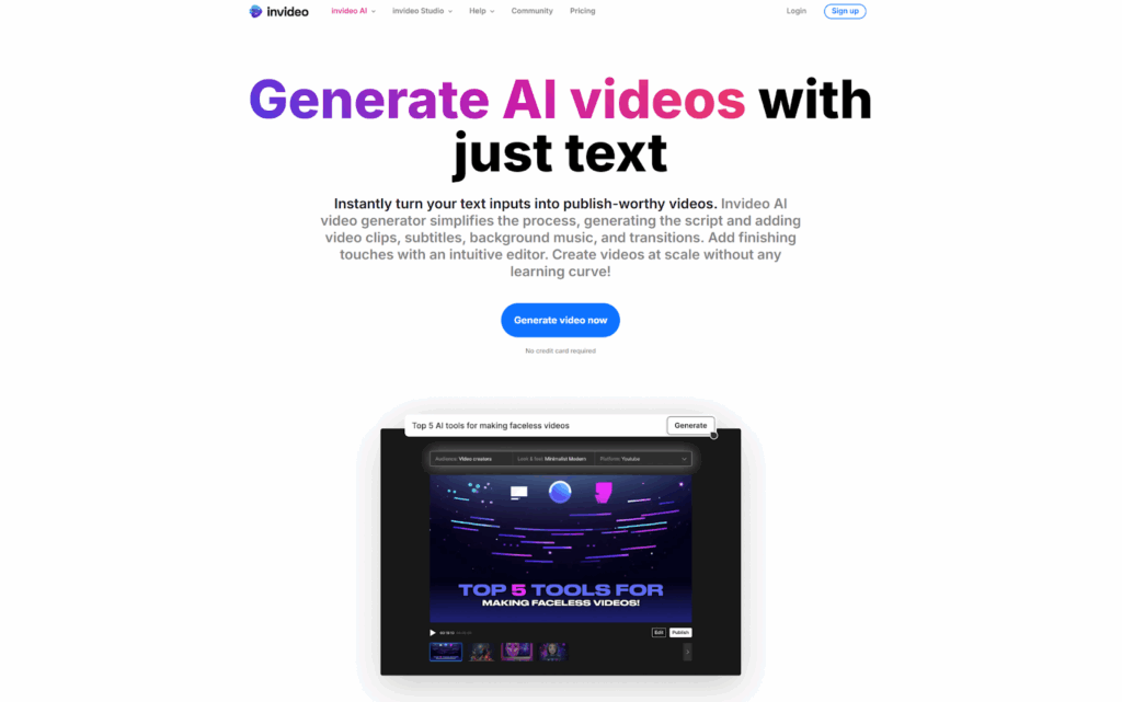 InVideo is a powerhouse online editor that combines a vast template library with robust AI features. Its strength lies in versatility, offering both a text-to-video AI tool and a comprehensive editing workspace. Creators can input an article URL or a description, and InVideo’s AI will craft a video draft complete with scenes, a voiceover, and text animations. With thousands of templates pre-formatted for every major social platform, it’s ideal for creators who need to maintain a consistent output across YouTube, Instagram, and Facebook.